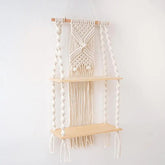 Enhance your space with this hand-woven macrame wall hanging shelf, crafted from premium cotton rope and quality wood. This piece features an elegant tassel-woven tapestry and boho-inspired design, bringing warmth, texture, and a touch of nature into your home. The minimalist white color complements any decor, creating a calm and serene atmosphere.