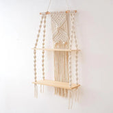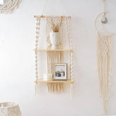 Designed with double-tier shelving, this macrame wall shelf provides ample space to display succulents, candles, books, photo frames, and decorative pieces. Whether in your bedroom, living room, or office, it serves as both a practical storage solution and a stylish wall ornament.